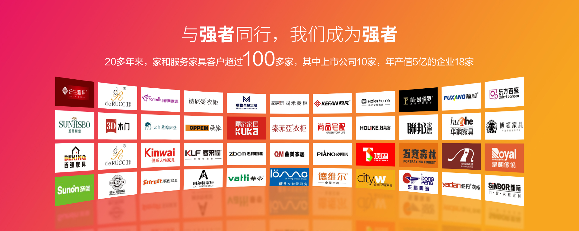 專注大家居行業(yè)多年,與業(yè)內(nèi)歐派、尚品宅配、索菲亞等眾多優(yōu)勢品牌結(jié)成戰(zhàn)略合作伙伴關(guān)系。
